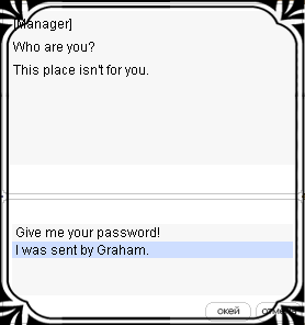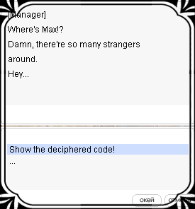 6. Говорим с менеджером - он возмущается что вокруг ходит много посторонних людей. Успокаиваем его и говорим, что нам удалось расшифровать код.