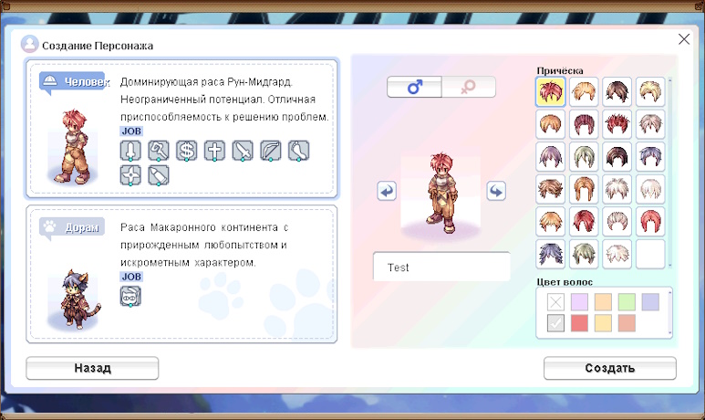 Создание персонажа