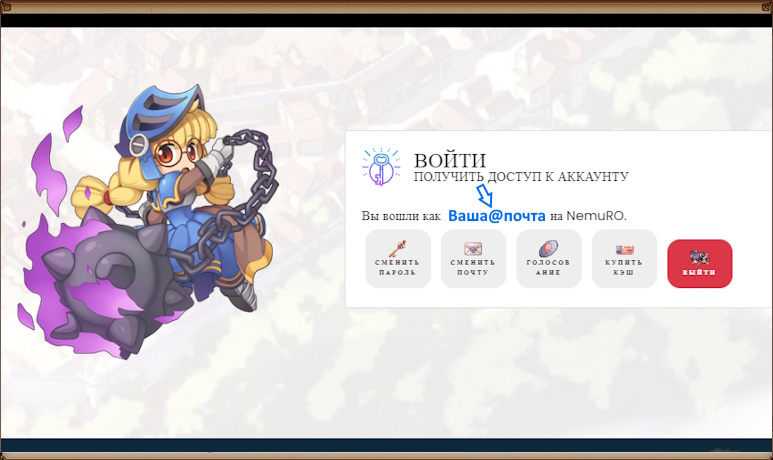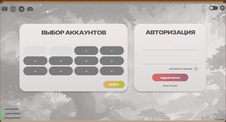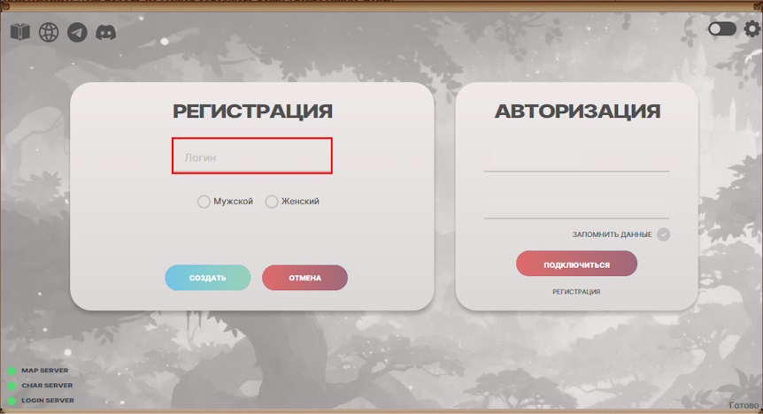 Для создания персонажа зайдите в клиент и введите данные указанные при регистрации.