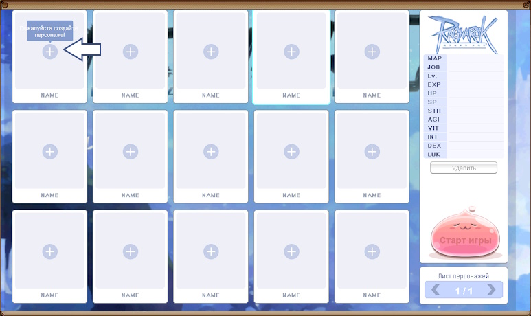 Создание и удаление персонажа