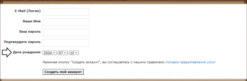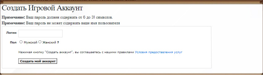 Для создания нового игрового аккаунта требуется только логин.